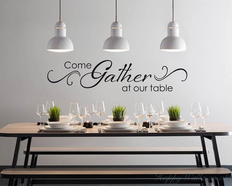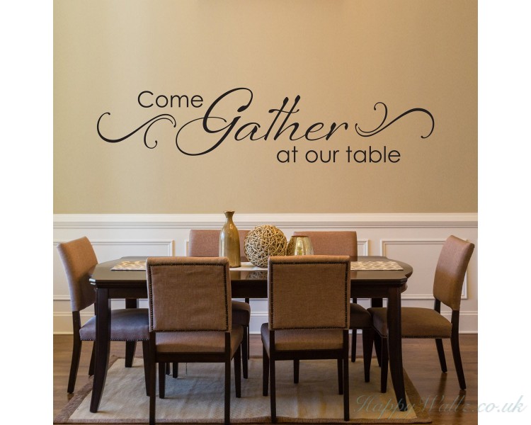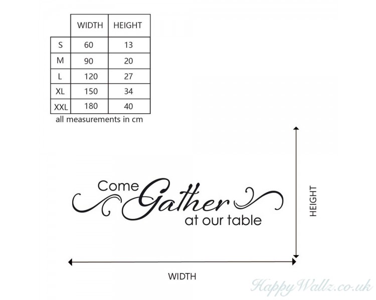 Come Gather at our Table Wall Decal is the perfect addition to your Kitchen or Dining Room! It's available in the color of your choice. See the color chart for your options. The photographs are for a reference be sure to use the measurements when ordering.