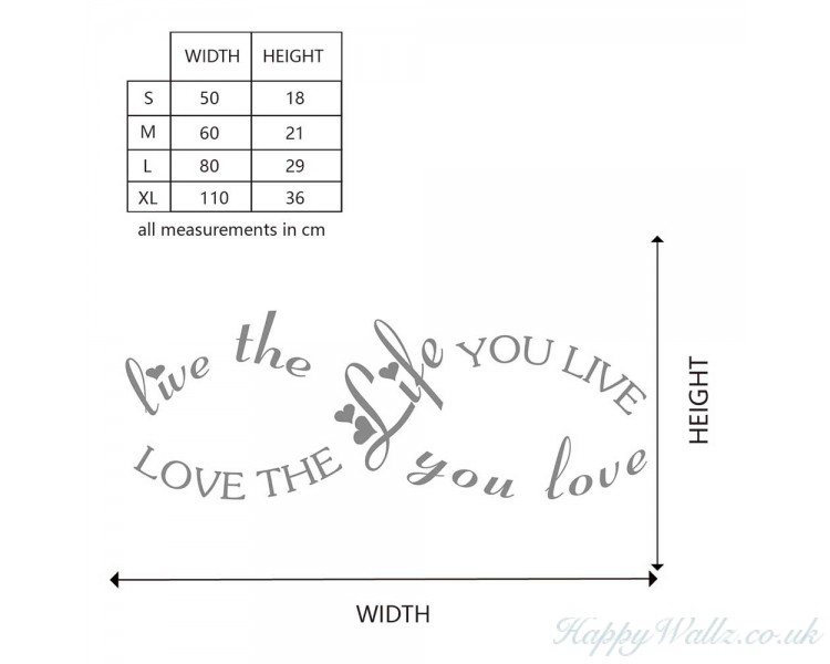 This wall decal is an infinity sign with the saying Live the life you love, Love the life you live.