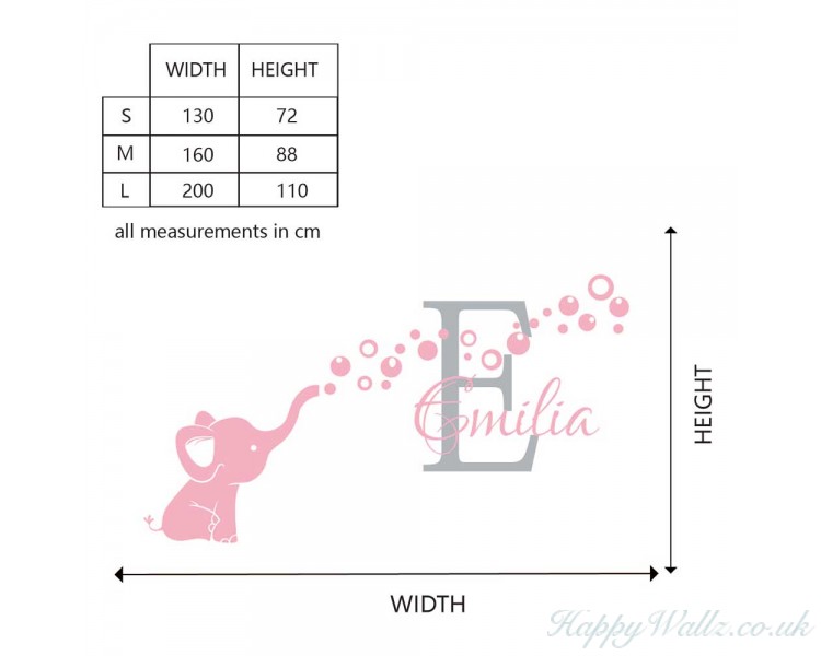 Babay's name with monogram, an elephant blowing bubbles wall decal is cute and fun for baby room decor and perfect as a baby shower gift.