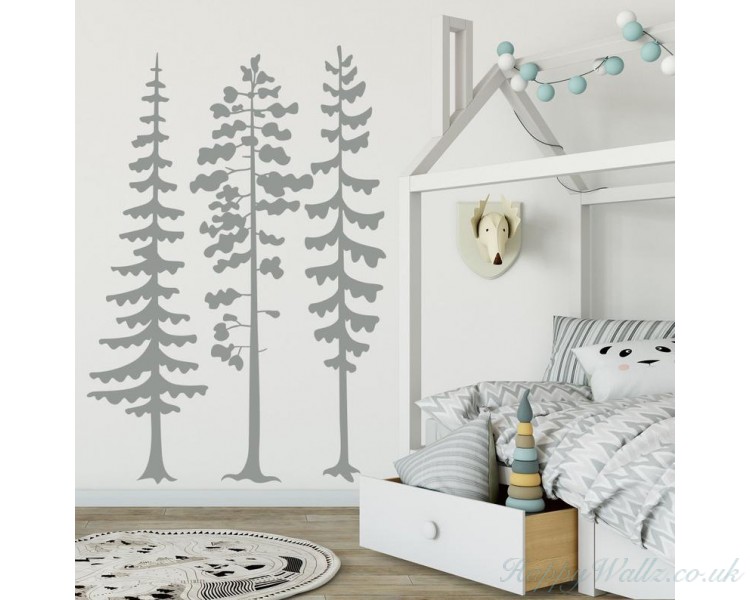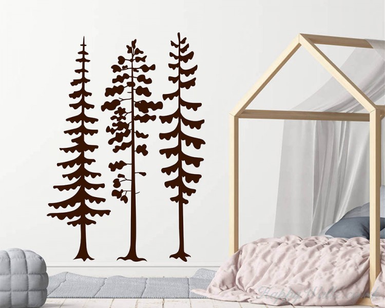 Pine Trees Wall Decals - Set of 3 - Tree Art Stickers
