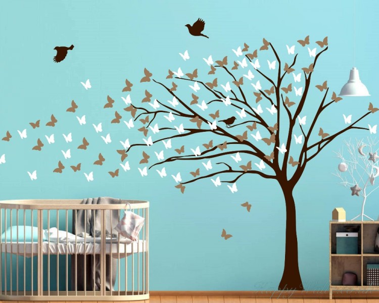 This large blowing tree will be the hero in your nursery! The cute butterflies make it the perfect decor for a girl room. Scatter the butterflies as you like on your wall obtaining the width you need.