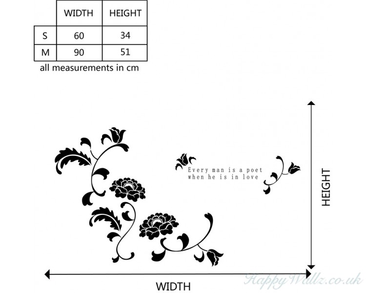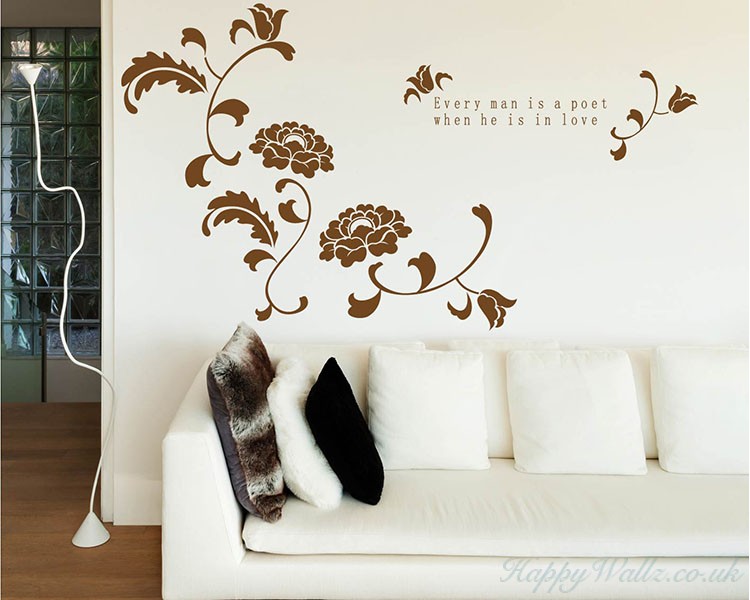 This wall decal is about beautiful florwers. And beside the flowers, there is a love quote who says: