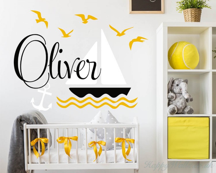 Custom Boat Name Decal With sea mew. You can customize this decal with your son's name.This Kids decal set wall decal would look great in any kids room. The decal can be 3 colours of your choice.