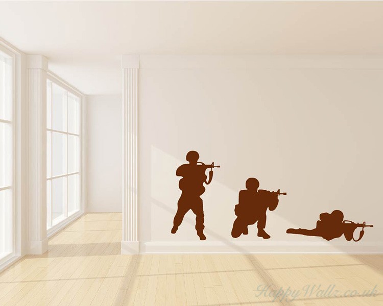 This wall decal is about 3 soldiers who are carry a gun. It is a kind of silhouette wall decal.