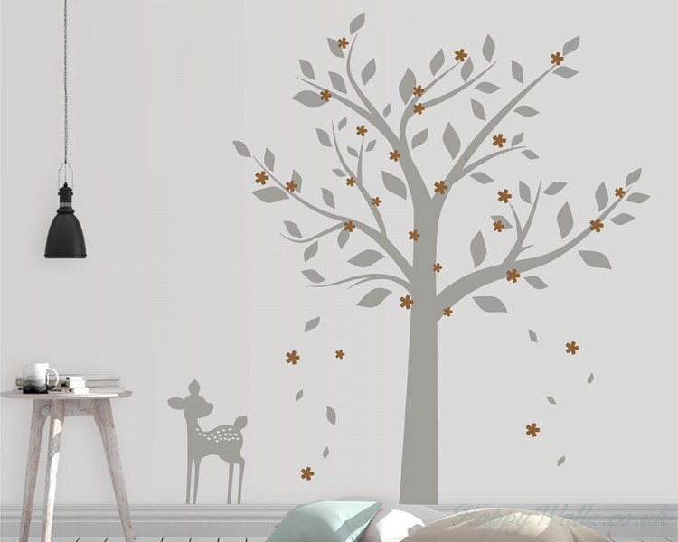 Tree with Leaves stars and Deer Decal. With this decal, you instantly turn regular nursery into the modern designed room. Our high-quality matte finish decal looks like hand-painted piece of art on your wall.
