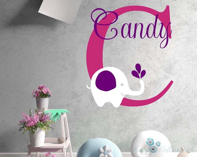 Babay's name with monogram, an elephant wall decal is cute and fun for baby room decor and perfect as a baby shower gift.