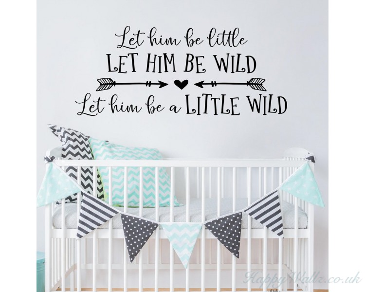 Let Him be a Little Wild wall decal is the perfect addition to your baby boy's nursery! It's available in the colour of your choice.