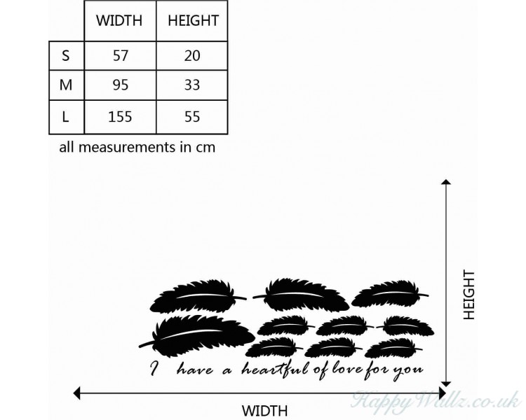 42cm wide (or 16.5"wide) x 1 feather sticker