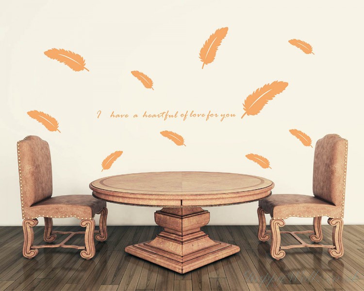 "I have a heartful love for you." Also within this decal, there are some feathers.
