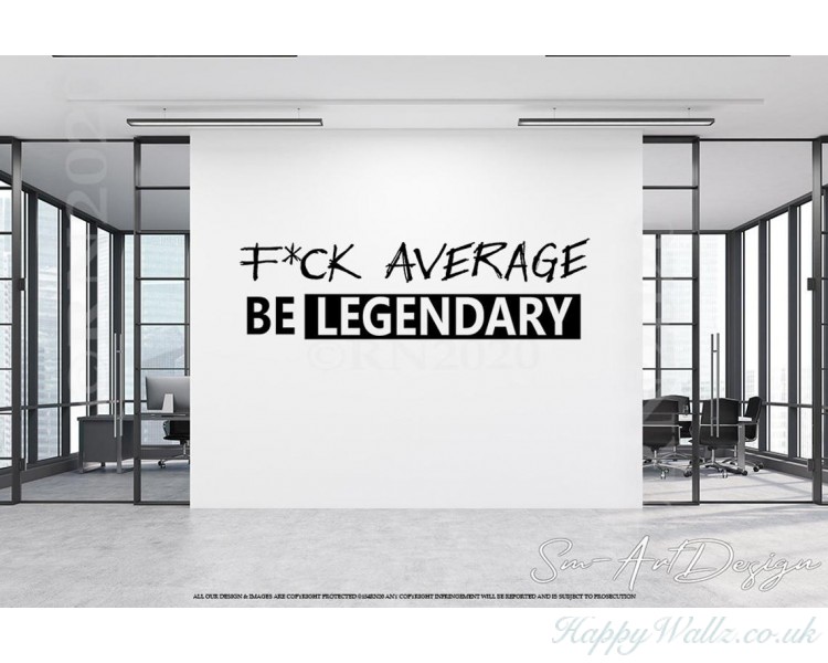 Fuck average be legendary wall decal vinyl sticker, gym workout quote, f*ck
